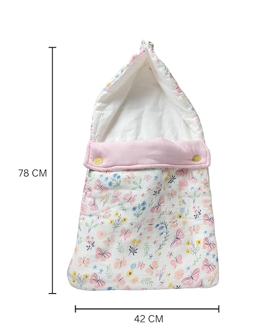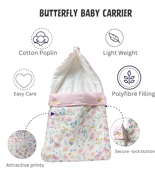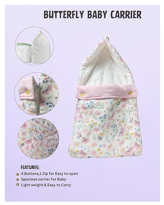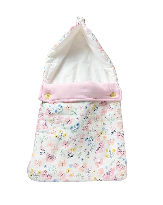 3 in 1 Baby Sleeping Bag and Carry Nest | Cotton Bedding Set for Infants and New Born Baby | Portable and Travel Friendly | 0-6 Months(Butterfly-Garden)