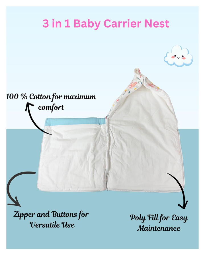 - 3-in-1 Versatility: This baby carry nest doubles as a baby sleeping bed, baby carrier nest for new born, and sleeping bag, offering maximum convenience. Whether used as a portable baby bed set or a cozy nest bed for new born, it ensures your baby stays snug and secure during sleep or travel.